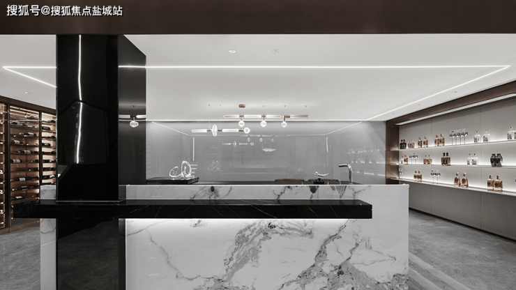 穿过岛台 另一侧是品酒室,大面积玻璃与石材细腻的纹路相结合,在起承转合间能够捕捉到,彼此细腻的纹理与形态,金属与皮质的加入加强了空间层次,沉浸酒香 闲适随性!透过视觉感官 激发内在能量,利用自然之韵,唤起人们对居住形态的迭代需求,德信浮山云湖印在沉稳中追逐未来,探索当代人居的更多可能!
