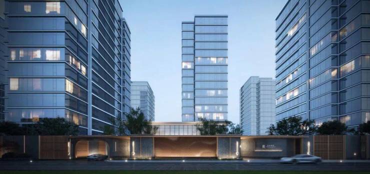 整个园区以围合式布局展开,七幢建筑借鉴中国古典园林的精髓,最大楼间距达到了63米,使得每栋楼都能享受到270°的开阔视野,仿佛是一座座隐匿于花园中的岛屿。为了与景观相呼应,园区立面采用“水晶天幕”设计,线条纤细,使建筑宛如天空中垂下的纯净湖面。
