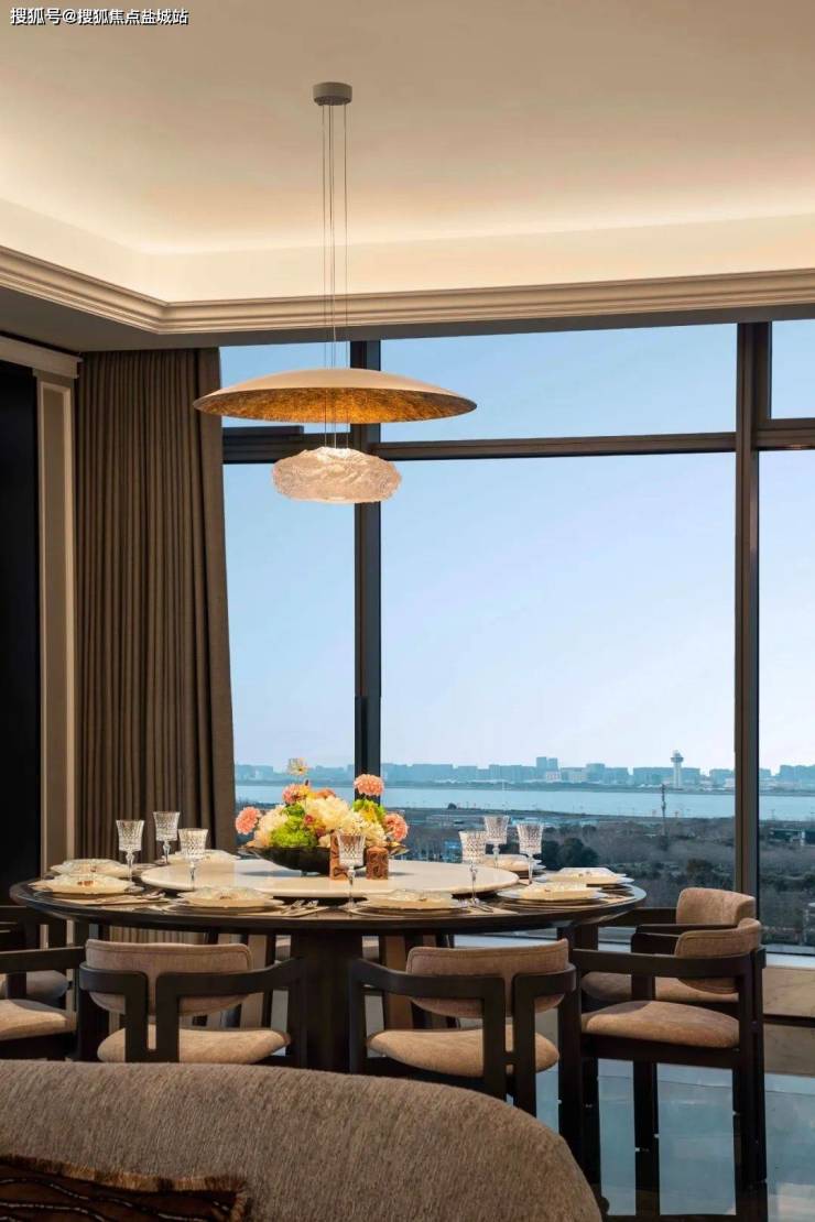 御钱湾建面约410㎡样板房实景图,窗外能眺望江景