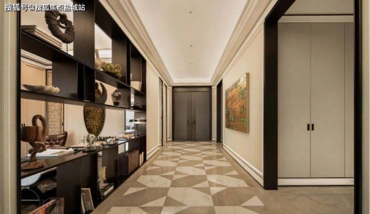 以御钱湾刚亮相的约410㎡样板房为例,入户空间做出了一条约2米宽的法式艺术走廊。