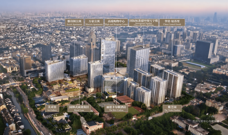 承袭北京华贸中心“商业航母”级成功运营经验,华贸集团于姑苏古城芯打造79万方城市高端综合体,涵盖奢侈品购物中心、园林式商业街区、美术馆、紫芝园、国际超甲级写字楼、国际高定服务公寓(华贸·姑苏里),以及由丽思卡尔顿、万豪行政公寓、雅诗阁等组成的奢华酒店群。以国际化高标准定义苏州城市商圈新封面,满足人们对大都会生活方式的憧憬与向往。