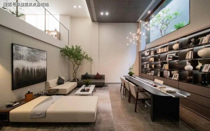 看一眼外立面,白色石材、香槟色的木纹铝板、大面积玻璃的拼接组合,怎么看都不像一个门槛只有400万+的低密叠墅。玉琮水景、山石跌水等等融入景观的大量良渚文明元素,弥漫着专属于杭州的千年气韵。满眼的“越级感”再配上只有1.2的超低容积率,最终才呈现出一座全低密真双叠大盘的样子。
