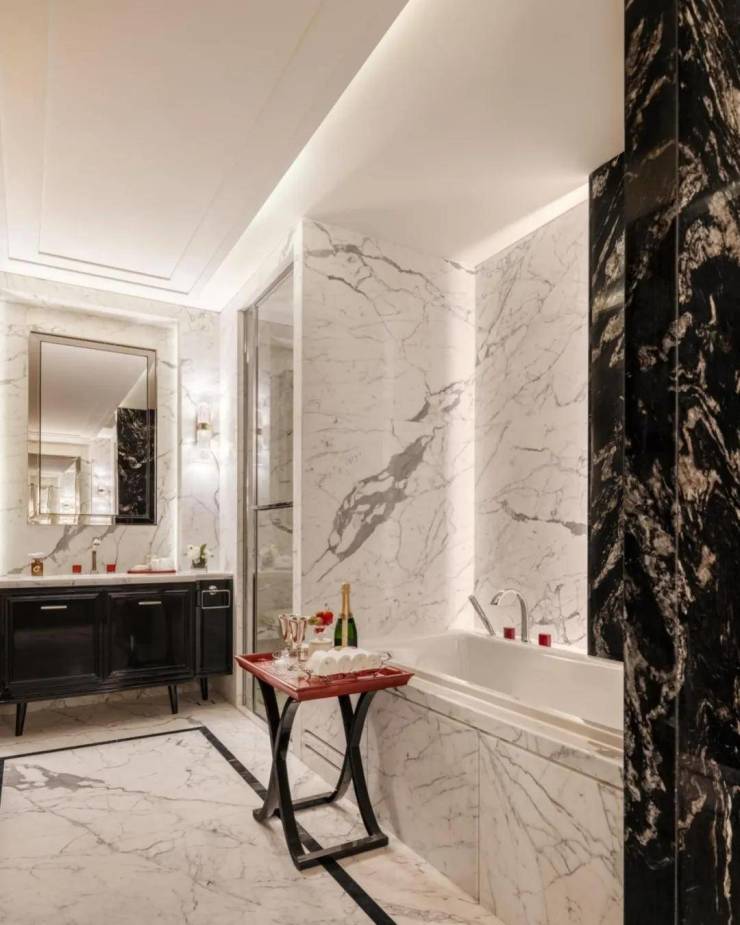 常被忽略的踢脚线,在设计师的妙笔下绽放新生。石材+斜面的设计组合,赋予了踢脚线别样的建筑美感。