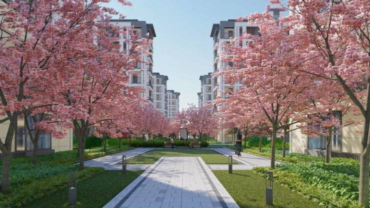 冬天在南侧双阳台欣赏倚梅院里的梅花灿烂;春天,家的北侧玉兰院里的玉兰花弥漫着淡淡的清香;春天,西侧樱花大道的樱花也开了,别人争先恐后的景区风光,是你每日归家沿途的春色;西侧郁郁葱葱的市政绿化,给闷热的夏日送去一丝清凉。