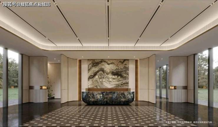 在您踏入这个尊贵而温馨的社区,首先映入眼帘的是迎宾大堂。这里充满了奢华、舒适和雅致的氛围,每一处细节都透露出不凡的品味和精致的生活态度。迎宾大堂中,一个蓝翡翠接待台熠熠生辉,它矗立在海纳百川七彩奢石背景墙前,仿佛在诉说着一种不朽的价值。这种历久弥新的奢石,见证了光与美的相得益彰,是品质与格调的完美结合。地面上的闪电米黄和布鲁诺灰的石材拼花,优雅而浪漫,仿佛在引领着一种潮尚生活的新风尚。