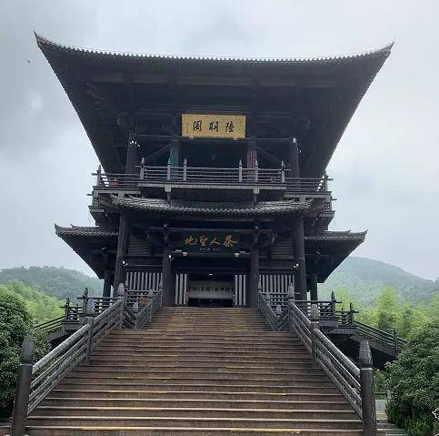 陆羽阁分三层,底层是《茶经》的经典茶语再现;二层则以被陆羽大加赞赏的“顾渚山景”与“紫笋茶园”为主题,以书法、绘画和摄影图片的形式,展现了陆羽与茶结缘,文人为茶而颂以及紫笋茶扬名天下的全过程;三层为一通透雅阁,正中央端坐着陆羽手执书卷的雕像。凭栏四望,顾渚山峰峦叠嶂,林木清幽。万竿修竹,一派苍翠,茶树茶垄,错落其间。站在三层最高层,四周是层层叠叠的翠竹绿树,好象把整个贡茶院包容在群山翠绿之怀中,有种临高望远、心驰神往之感。