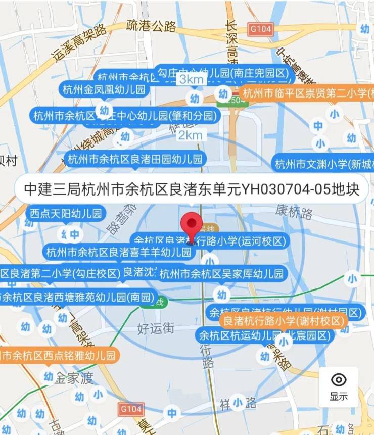 1KM范围内杭行路小学运河校区、杭州市文渊小学、良渚第二小学良渚校区等