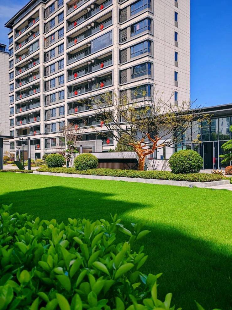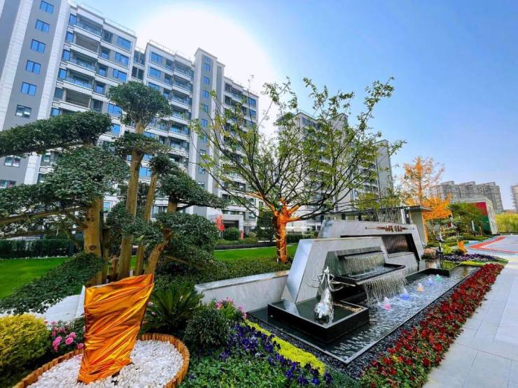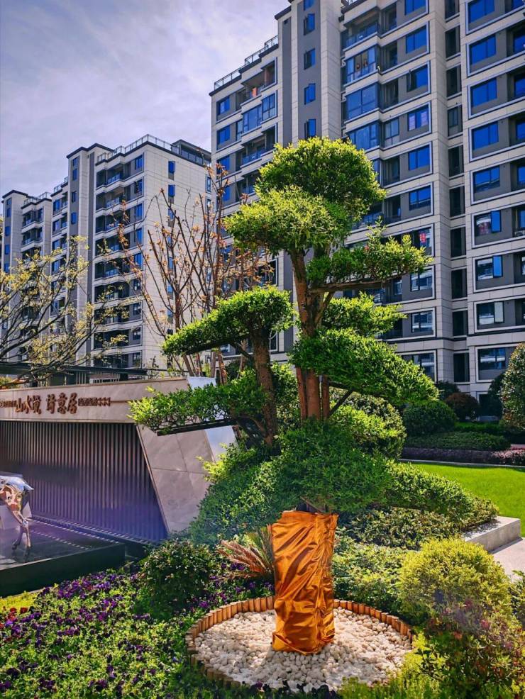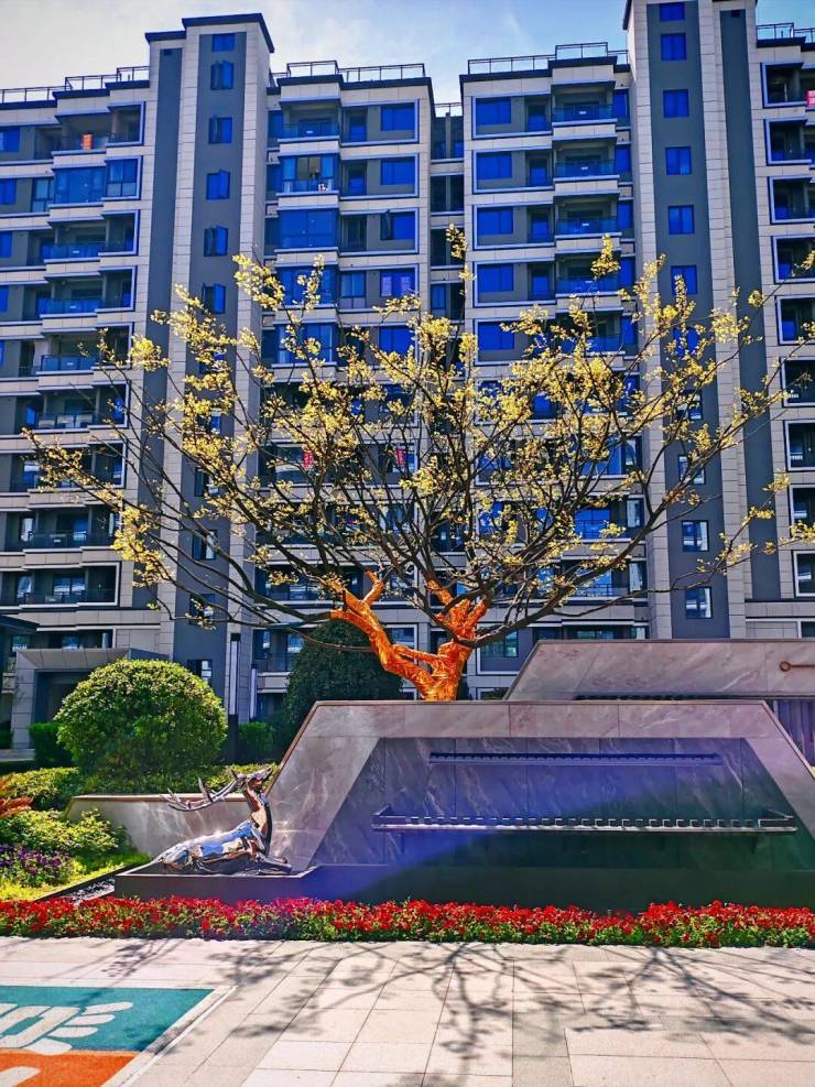 气派非凡的社区大门仪式感十足,彰显尊贵的同时也在迎候主人的归家;两旁的花木生机勃勃,一派缤纷多彩,演绎初冬时节的绚烂。