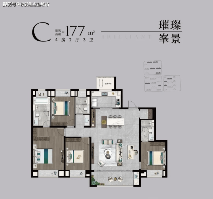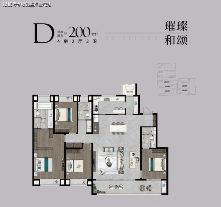 【宽奢四室】南北通透4房,家人独立房间,启幕品质人居