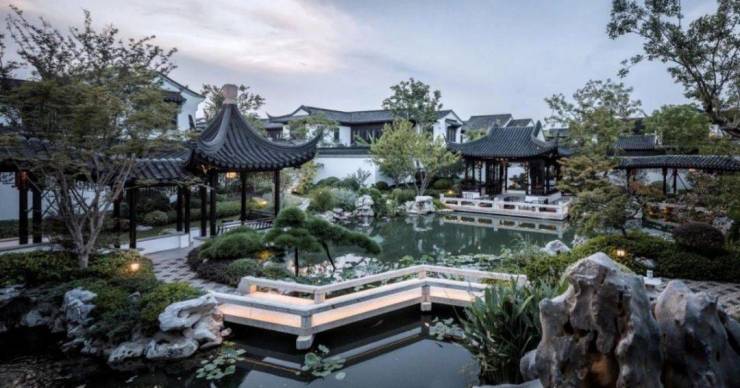 上海桃花源将皇家园林的气派与江南园林的秀美相结合,形成“南形北制”的规划特征。打造出传承千年历史、适应当代生活,复兴传统文明的中式大宅。