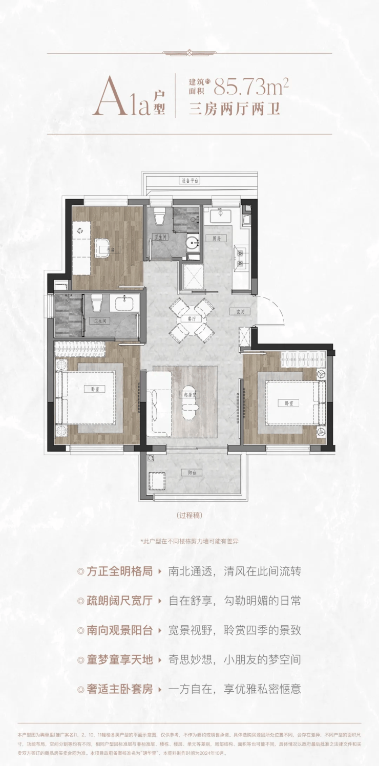 最后我们再看这次的“王炸户型”:建面约140㎡的四房两厅两卫顶复户型。