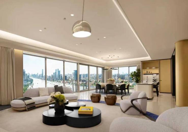 - 270°环幕瞰江大平层:巨幅玻璃幕墙如通透画框,将日夜流转的浦江盛景尽收眼底,室内外交融,气象万千。