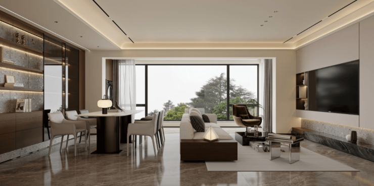 步入这160平方米的梦幻空间,仿佛踏入了一个精心雕琢的艺术殿堂。设计师巧妙地运用现代材质与装饰技巧,将那份难以言喻的奢华感,以最为含蓄而高级的方式展现出来。墙面与地面,选用的是质感细腻、色调柔和的高级材质,它们不仅耐得住时间的考验,更在不经意间流露出居住者对生活品质的坚持与挑剔。
