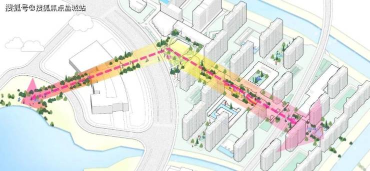 据悉社区由自持住宅、可售住宅、社区配套三大功能组合而成,北区为公区自持配套区,中区为住宅社区,南区为住宅社区及配套。