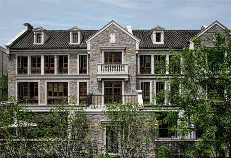 运用新旧料艺相结合的手法,溯源旧址建筑5大立面风格。涵盖早期石库门、后期石库门、新式里弄、沿街中式立面及Artdeco等丰富的建筑风格,通过清水砖砌筑、石材幕墙、仿木铝合金墙面等手法,将经典海派与现代居住理念融合,经典超越经典。