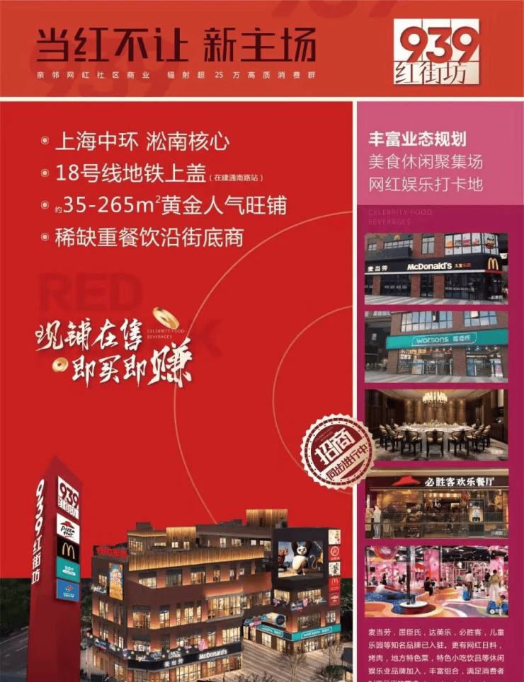 价值点3:打造区域地标性商业项目以中高端餐饮品牌招商进驻,打造出区域性商业的“新篇章”,演绎北上海的繁华新时代,为淞南板块居民提供全天候24小时网红打卡圣地-夜市一条街。成为淞南唯一环境最优雅、品质最高端、营业最时长、风格最独特的特色餐饮,有情调、有小资的珍馐美味。