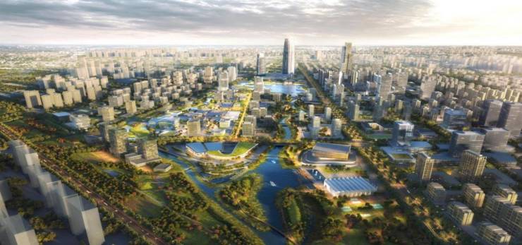 地标景观“良渚之 眼”与百米建筑集群辉映