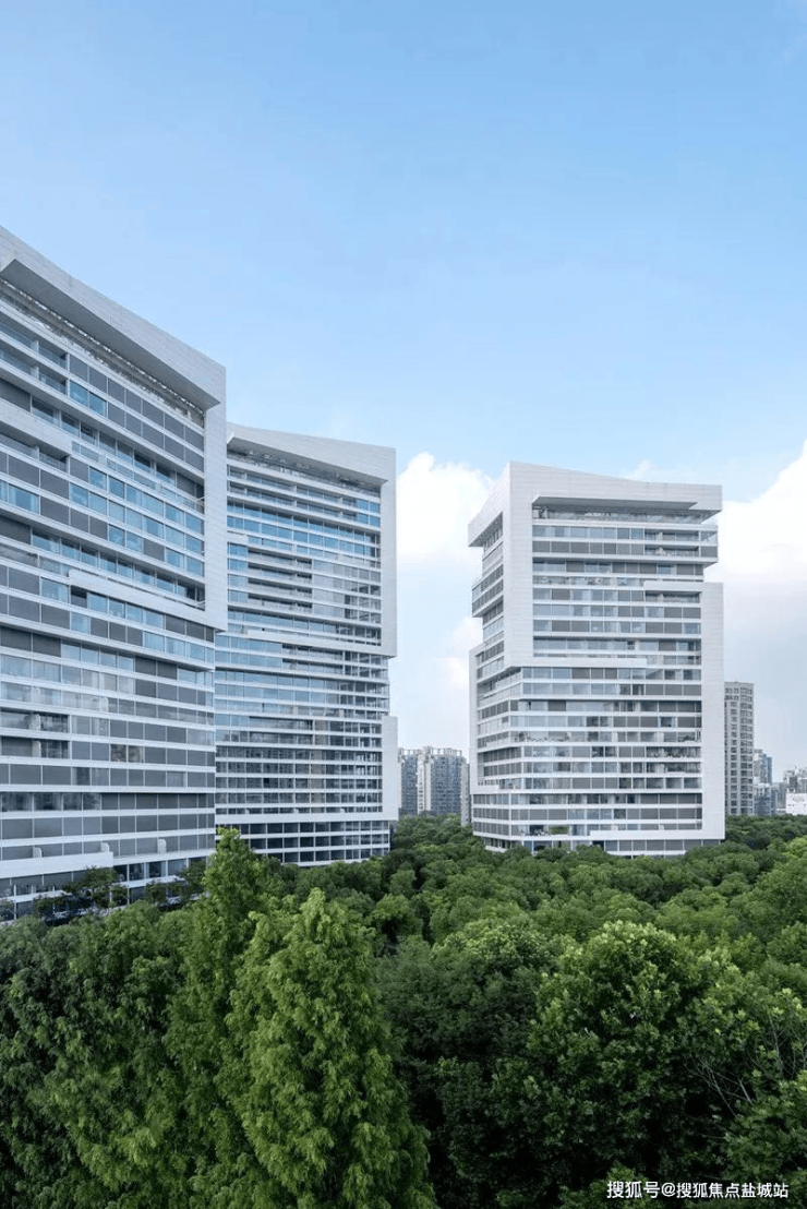 整个社区都是绿色森林,树海环抱,连底层都挑空6~9米,种植绿色,让每户人家都能“开窗见树”,让房子生长在森林之上。
