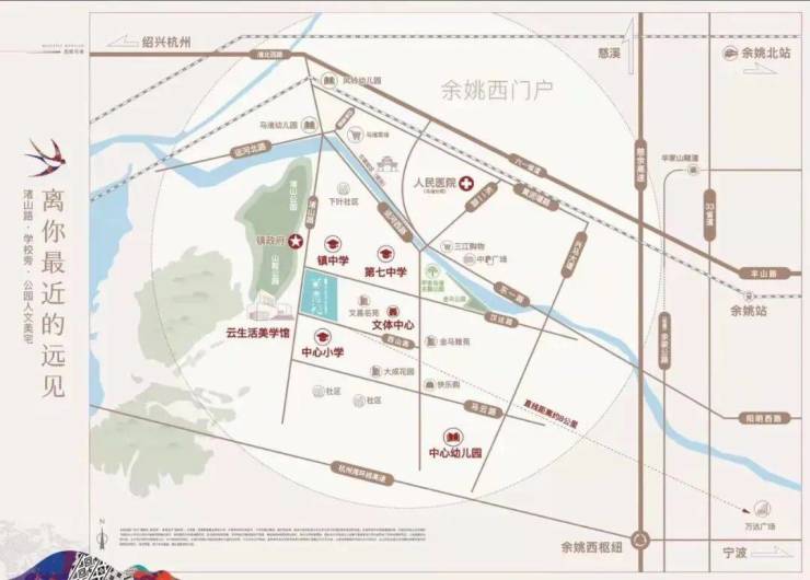 项目位于余姚市马渚镇中芯位置,坐拥渚山路、西山路等城市干道,一步渚山公园、山前公园,毗邻镇政府、中鑫广场、人民医院(马渚分院)等,邻距离镇中心幼儿园、镇中心小学、镇中学、第七中学等优质教育资源。