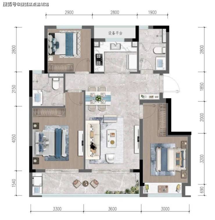 洋房A户型(建面约98方)9.9m奢侈面宽丨全明通透丨LDKG一体化设计丨6.9m跑道阳台丨豪华主卧套房