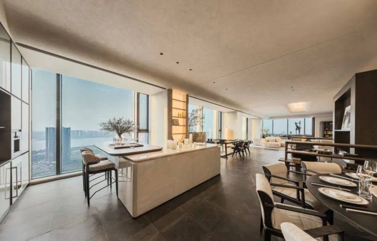 恰如安放两种生活方式的艺术容器——它以两种截然不同的空间叙事,解构顶豪的本质:当艺术成为空间的肌理,生活就是一场与自我、与时代的对话。约21米的横向面宽瞬间撑开了城市画框,钱塘江景得以毫无保留的尽情展示,约180方的会客空间则是业主能够自行定义的海绵空间,足够根据其喜好任意布置。
