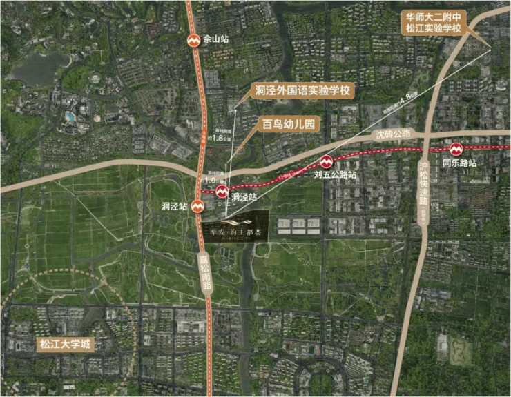 松江区人民政府与华东师范大学合作共建华师大二附中松江实验学校(九年一贯学校),洞泾外国语实验学校加入华东师范大学松江基础教育集团,和华二松江享受同等待遇,两所学校均已投入使用!(新房不承诺学区,此处仅为周边教育资源罗列)