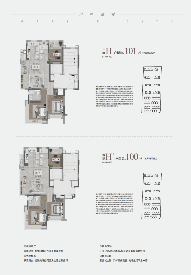 H户型:把“江景+中轴+墅区”这三重景观资源一网打尽!