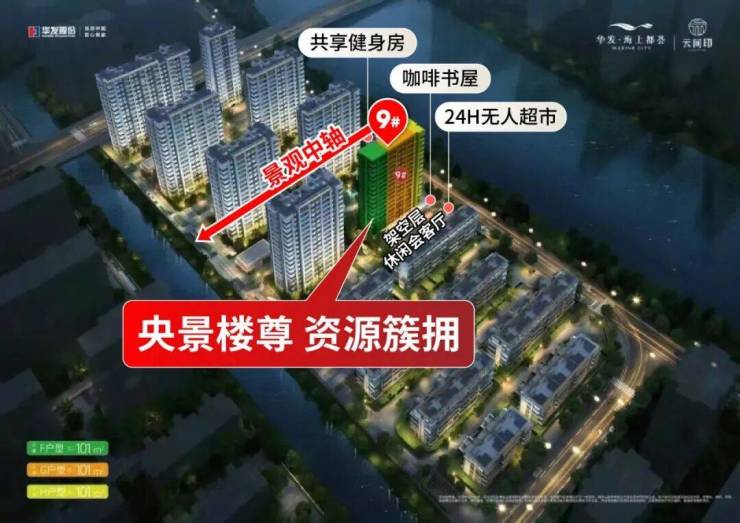 9号楼本就位于社区核心位置,不仅正对景观中轴,形成从江岸到园林的完整视觉通廊,更拥有俯瞰低密墅区的视野优势。
