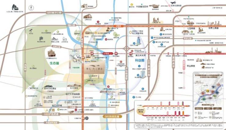 项目周边有广富林文化遗址、广富林郊野公园、辰山植物园,佘山国家森林公园、月湖雕塑公园等。