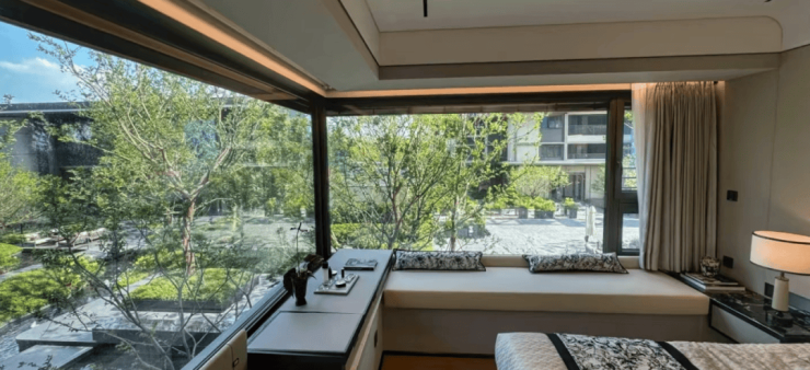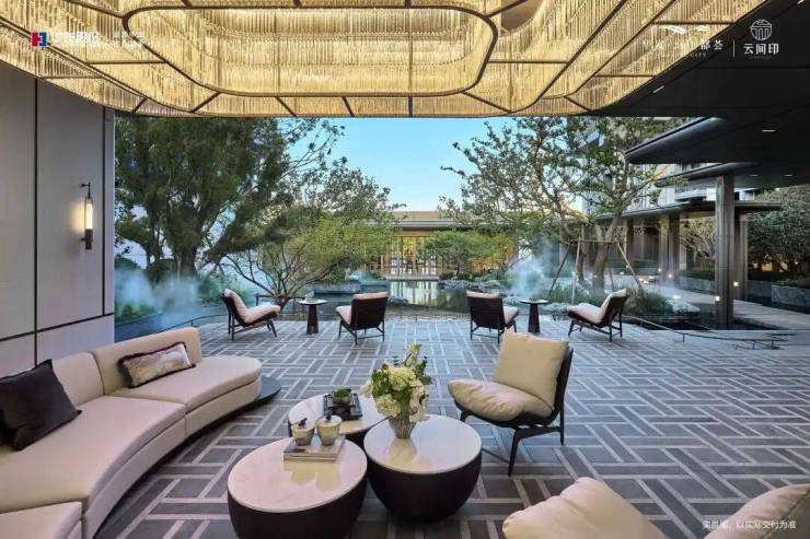 约350㎡的中央水院直接对标了世界顶级的虹夕诺雅酒店的静谧氛围。当业主结束一天忙碌的工作,回到这里,听到的只有潺潺水声,感受到的是一种极致的宁静与治愈。