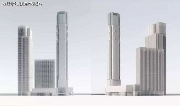 方案从塑造城市地标形象出发,关注与城市环境的联系,使自身成为南北贯通的商业轴线上的重要节点。高层建筑群形成动态上升的城市天际线,在界定城市空间的同时,藉由顶部的观光大厅形成风格鲜明的城市地标形象。