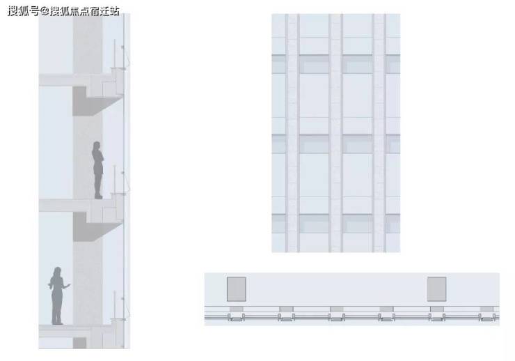 裙房提供了商业和生活配套,同时也在用地中央形成了舒适的步行空间,架空连廊、下沉广场和多个次入口的交叉作用,使其形成一个全天候的立体商业街区。不仅连通了内、外城市空间,也创造出富有活力的场所氛围。