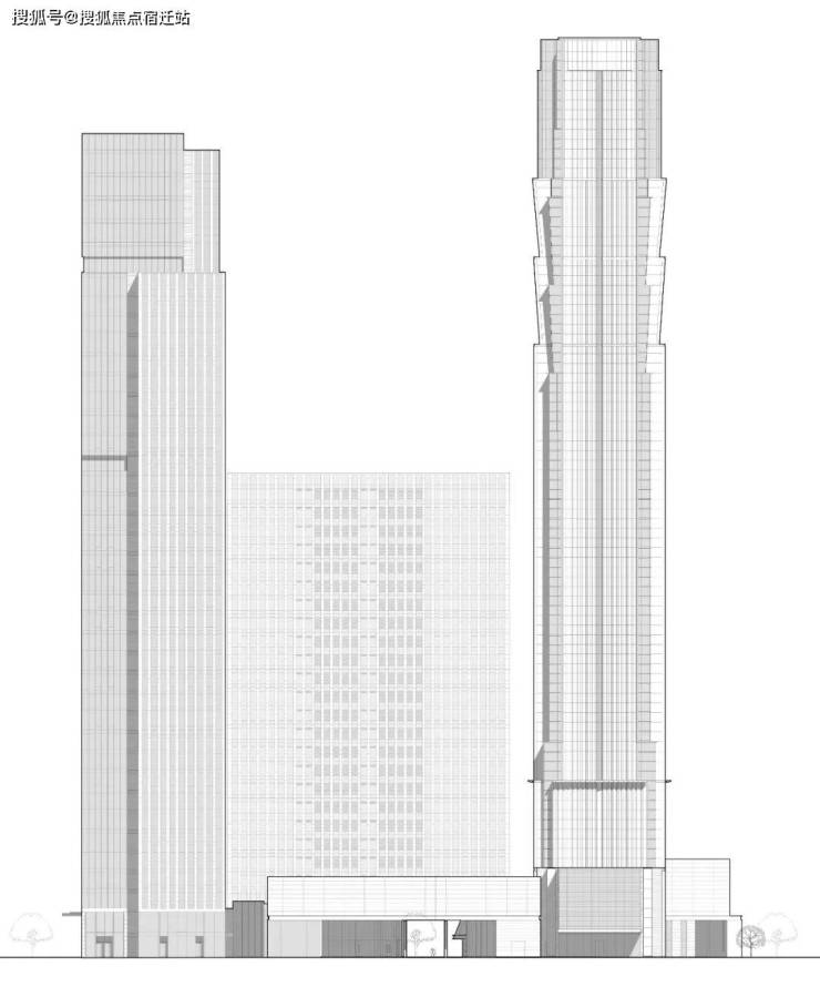 基地四周存在明显的环境差异,如何提供针对性的城市策略是设计关注的重点之一。基地东、南两侧紧邻城市干道,塔楼的布局塑造出均衡的城市形象;北侧设计主动将规划中的地铁与商业街纳入考量,后者的大量人流未来将由天桥引向基地内部,实现综合体与周边区域有机融合。西侧开放式街区是对基地西面回迁安置区的积极回应,建筑师重视该区域的生活氛围和商业需求,希望营造出一片氛围融洽的步行城市空间。