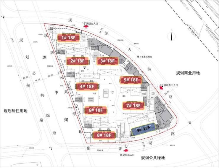 普通商品房用地,用地面积约39769㎡,容积率2.2,限高60米;据规划显示,规划12栋可售住宅,总高17-18层,总户数约901套,容积率2.2,非人车分流,车位比约1:1.2。
