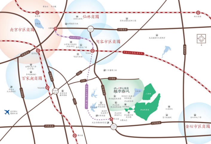交通配套;项目周边多条高速环绕,一小时左右畅达南京各个主城区及镇江、常州市区。南京第一条跨市域地铁S6已经开通,后期还将延伸至茅山站。预计今年底开通的南沿江城际高铁,大大缩短去各个中心城市的距离,公共交通更加便捷。