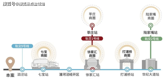 9号线能与多线同台换乘,3站七宝,6站漕河泾开发区,9站约29分钟(数据来源于上海地铁)徐家汇,还能一路连缀新天地、世纪大道等核心商圈,大城资源,尽在帷幄之中。