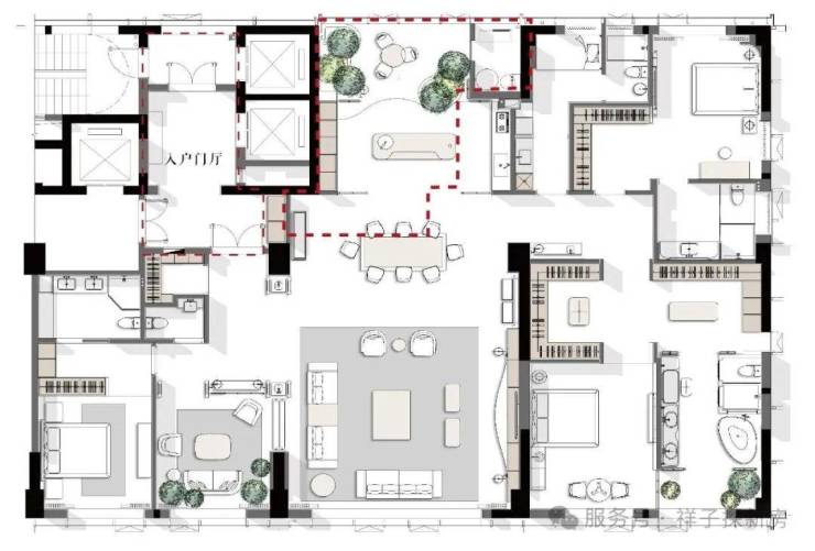 12、仅30户,稀缺!一层两户面积统一431平方,业主圈层很纯粹且高端。