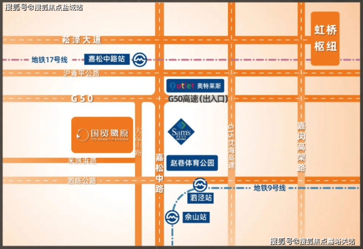 交通方面,项目距离最近的地铁站是9号线佘山站,步行有一些距离,日常出行需依赖自驾。约2.5公里即达G50高速入口,临近嘉松中路、沈海高速、嘉闵高架路等主干道,可以快速直达虹桥商务区。