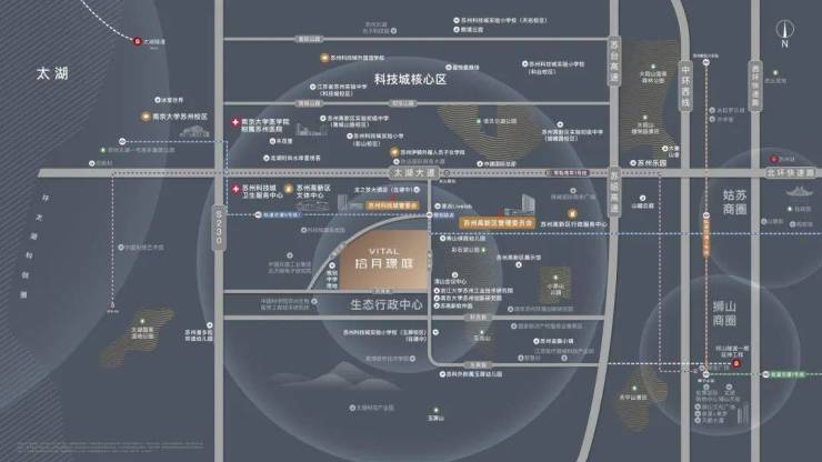苏州核心板块梯队:苏州科技城位于苏州西部,西临太湖,东依大阳山国家森林公园,是苏州市“一核四城”发展定位中的生态科技城的重要组成部分,是苏州高新区行政中心所在地。