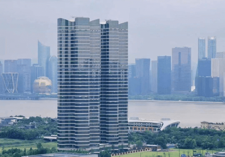### 二、产品设计#### 主力户型- **光幕平层**:建筑面积约240 - 270㎡,拥有270°的环幕视野,让您将窗外美景尽收眼底。3.95米的层高,搭配LDKB一体化横厅设计,客厅面宽达11米,空间开阔大气。精装标准约15000元/㎡,配置德国柏丽橱柜、全屋智能系统,为您打造高品质居住体验。- **寰景跃层**:建筑面积约480 - 540㎡,独特的挑空设计,带来IMAX级江景视野。主卧套间配备全明卫及独立衣帽间,尽显奢华与舒适。#### 设计亮点建筑立面巧妙地以杭州市花“桂花”为灵感源泉,将四瓣曲线造型与鎏金玻璃幕墙完美结合,成功塑造了钱塘江畔的光幕地标,成为城市中一道亮丽的风景线。园区采用围合式布局,巧妙融入钱塘江水韵元素,精心配置全冠移植的名贵树种以及下沉式艺术公园,营造出自然与艺术相融合的居住环境。