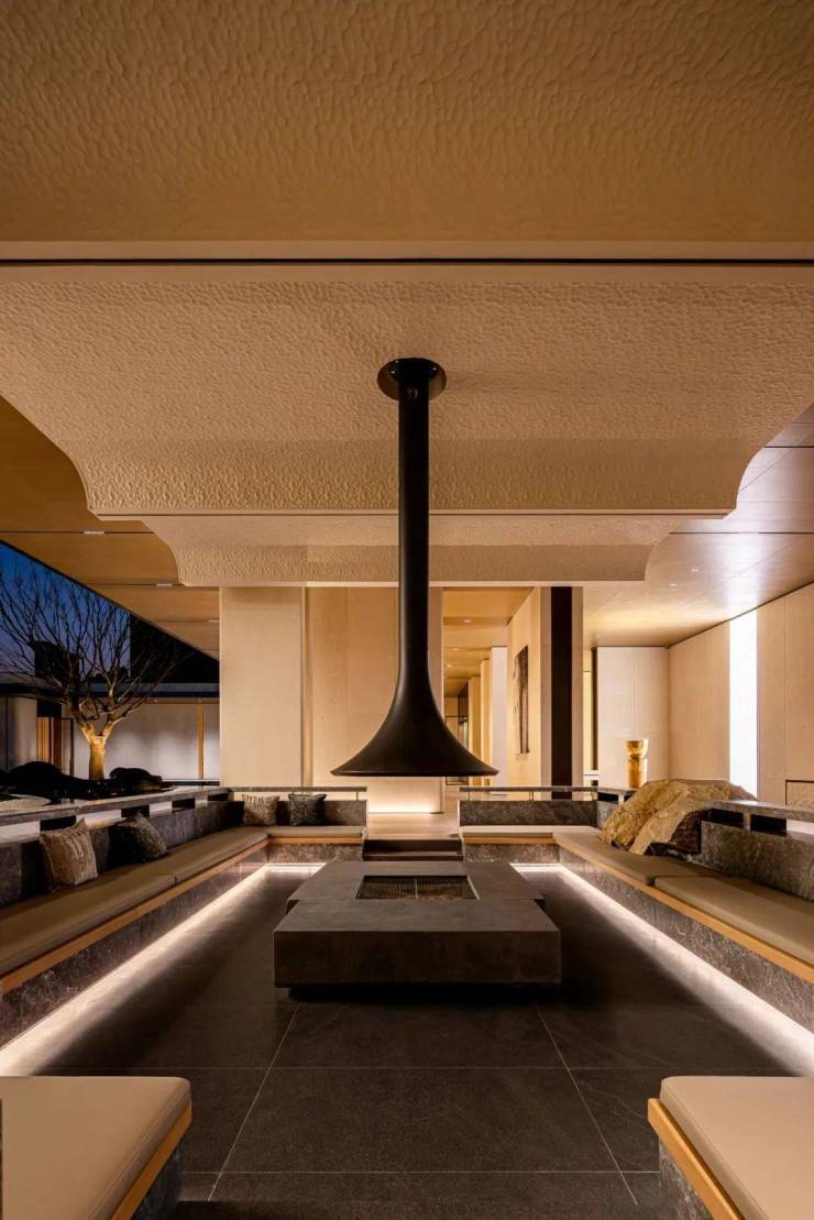 漫步于沐云川的架空层,您将陶醉于每一处精心设计的空间。尤其是独具匠心的围炉煮茶下沉式「雅座」,巧妙地降低了约30公分的地平,使您与水院的距离更近,营造出一种更加温馨而被环绕的氛围。在此举办一场冬日围炉盛宴,即使是初次见面的邻里,也能迅速破冰,欢聚一堂。