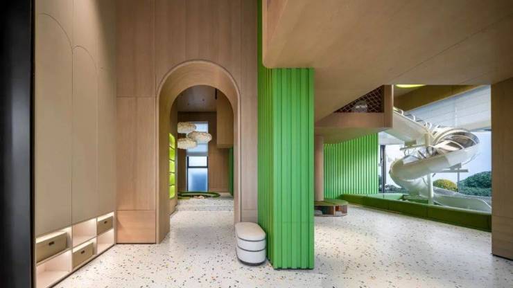 沐云川架空层高达6米,为孩子们打造了一个宽敞的探险乐园,下楼即享「小奈尔宝」般的欢乐天地,让小朋友们流连忘返,尽情享受攀爬与嬉戏的乐趣。