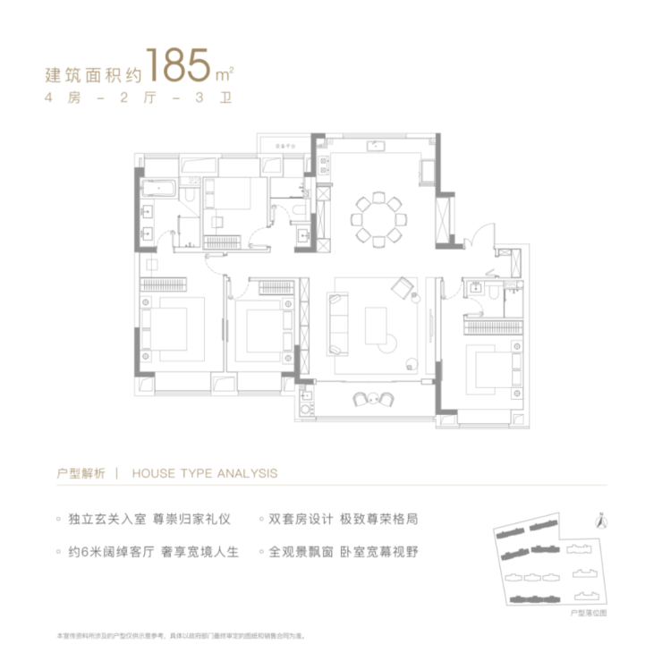 奢阔大平层建面约160㎡、185㎡、218㎡大平层户型,无论是尺度感还是功能性,都做到了绝对的领先。