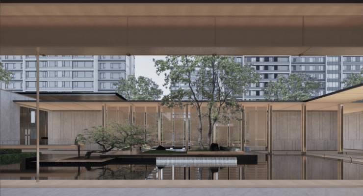 汲取宋氏美学中“引、礼、廊、趣、赏、院”六大设计元素,园林遵循“一园三堂”的手法,即山水隐园、门堂、厅堂、轩堂并齐,打造可行、可塑、可游、可居的东方意境,营造繁华中的栖心之所。