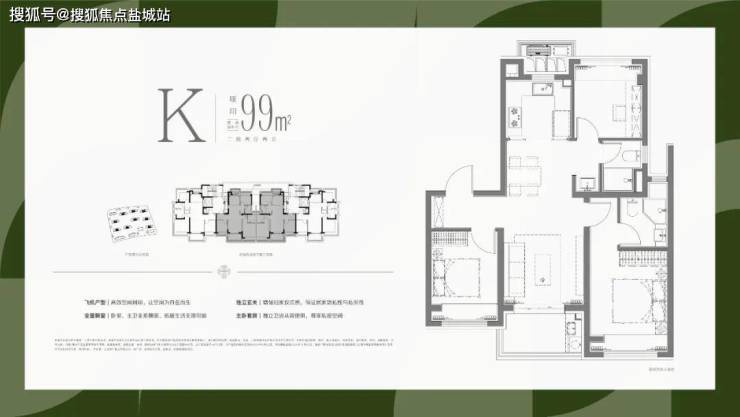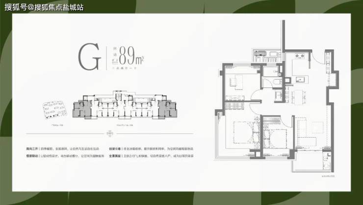 1、全部南向大面宽设计,保证最为出众的采光和视野需求;