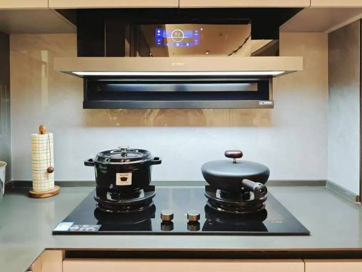 比如厨房配置方太旗舰款「隐藏式油烟机」,可以自由地控制上下降距离,同时隐藏起来不占空间,对于空间美学也是一种完善。