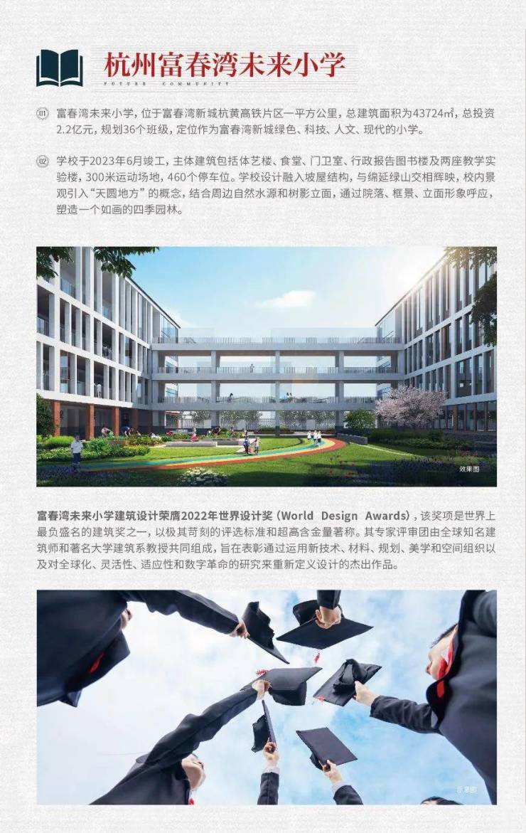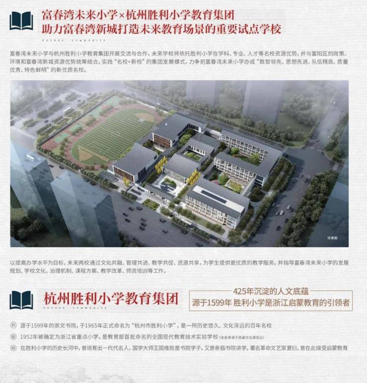 [教育]:100m省级重点小学(富春湾未来小学)。网签即可入读公办幼儿园和义务教育学校。