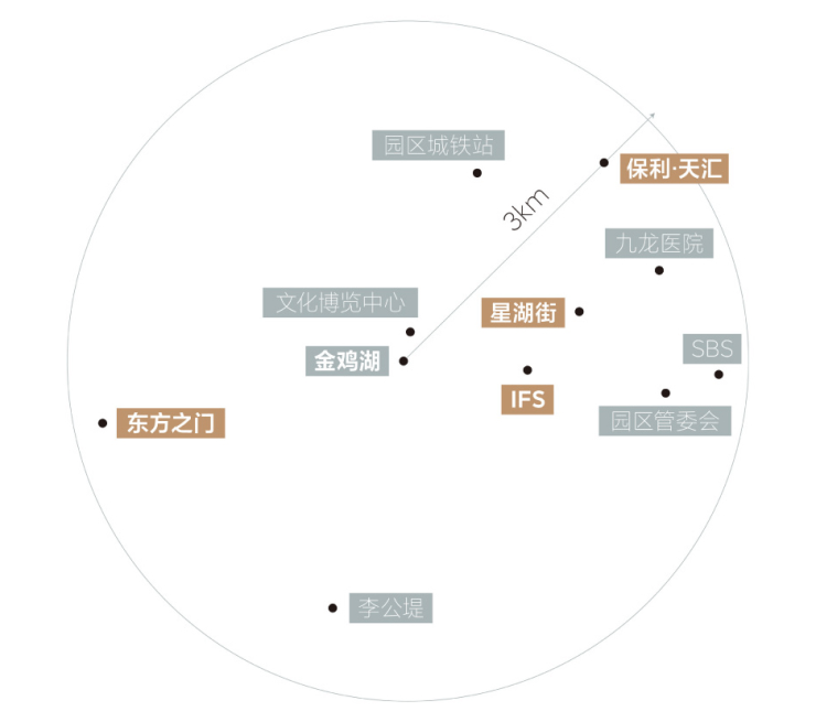 在约3公里的CBD黄金圈里,近揽园区高端城市地标,于此速达各大繁华场