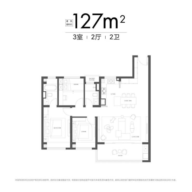 大横厅外接阳台,餐客厅一体化;