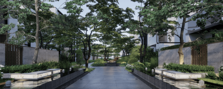 第五院:闲庭—无边界的景观体验空间,让人独处,寻觅属于自己的梧桐树;